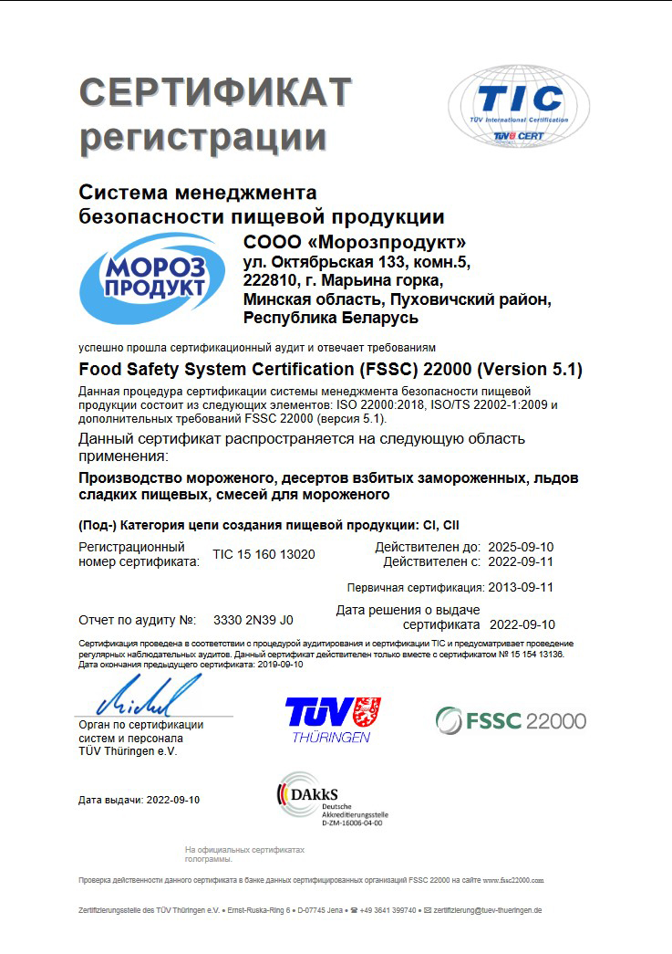 «Компания занимает лидирующие позиции на белорусском рынке мороженного и замороженных полуфабрикатов.